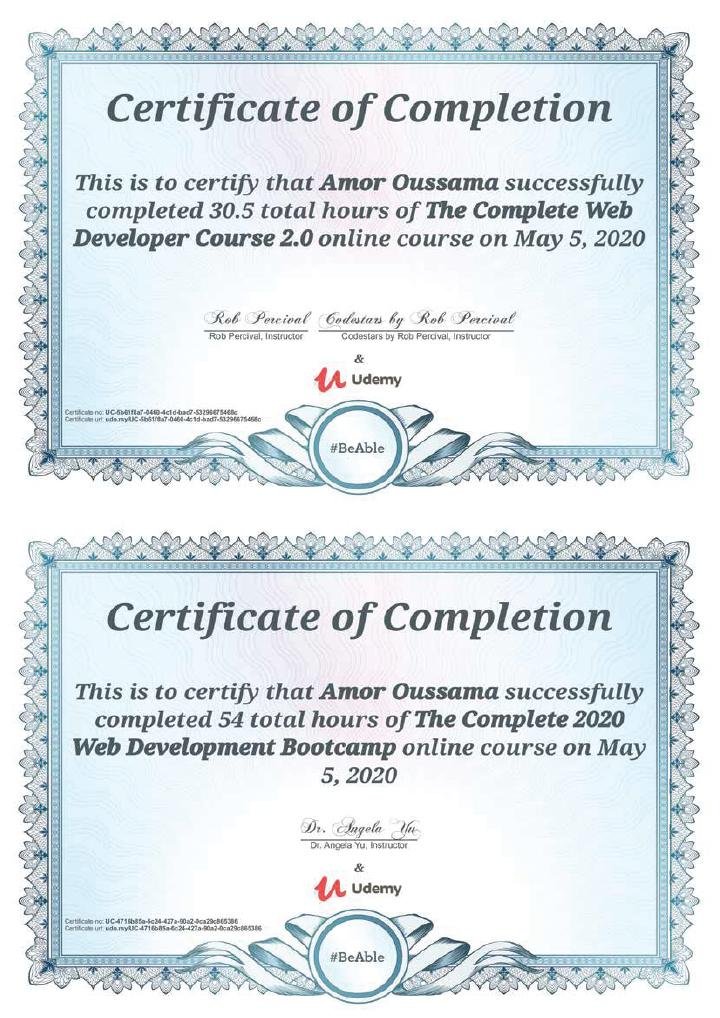 Université d'Udemy (2016 - 2020)Certifications spécialisées en développement Web (HTML5, CSS3, PHP) et en production multimédia. Capacité à concevoir des professionnel centrées sur l'utilisateur (WordPress & UX/UI) et des sites performants.