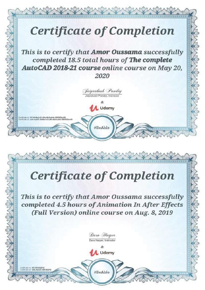 Université d'Udemy (2015 - 2020)Expertise certifiée sur la suite Adobe (Photoshop, Illustrator, InDesign). Maîtrise avancée des outils de création visuelle permettant de produire des designs conformes aux standards internationaux les plus exigeants.